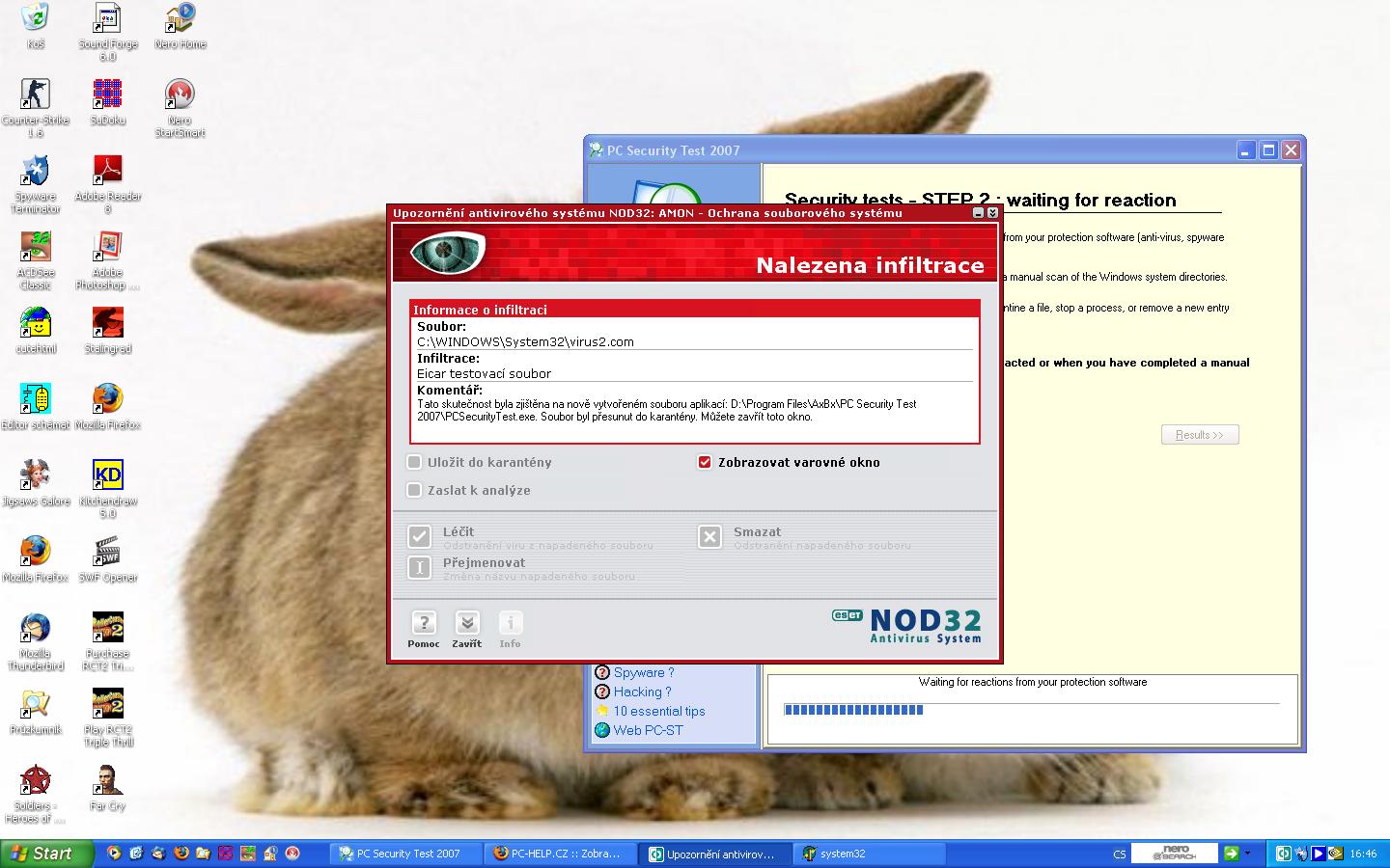 Karlos má pravdu Eicar je dohodnutý typ kódu, který všechny antiviry hlásí jako vir-slouží, jak již bylo výše zmíněno, k testu připravenosti rezidentní ochrany.