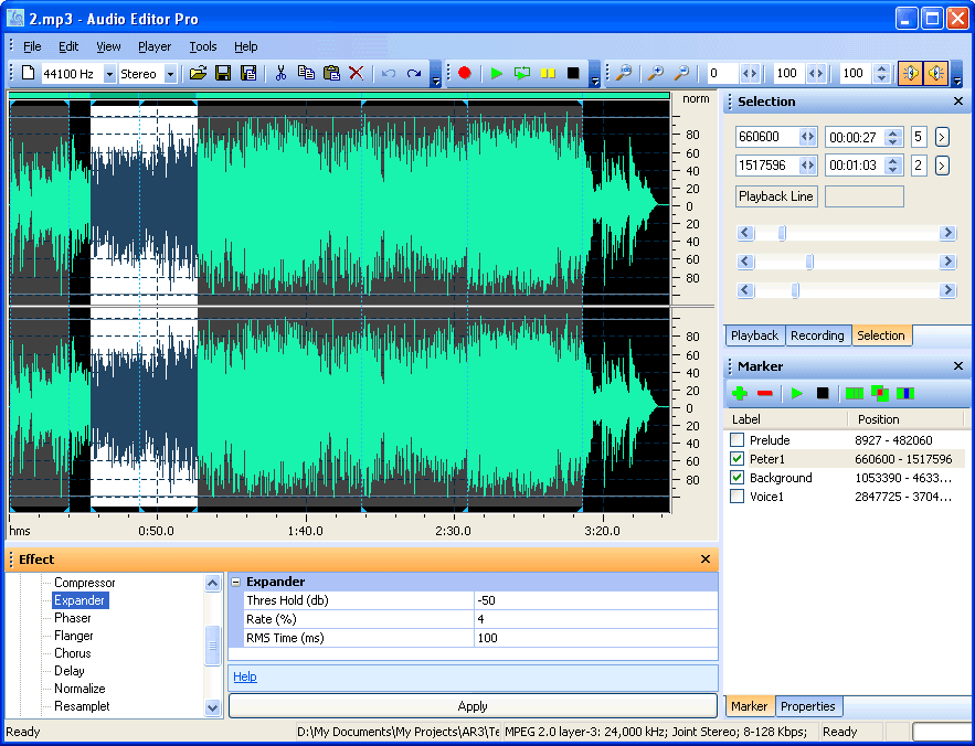 Pro zvukový editor umožňuje vytvářet a upravovat hudbu, hlas a jiné zvukové nahrávky. Při editaci zvukových souborů, můžete vyjmout, kopírovat a vkládat části záznamu, a v případě potřeby, přidat efekty jako ozvěna, zesílení a redukce šumu.
