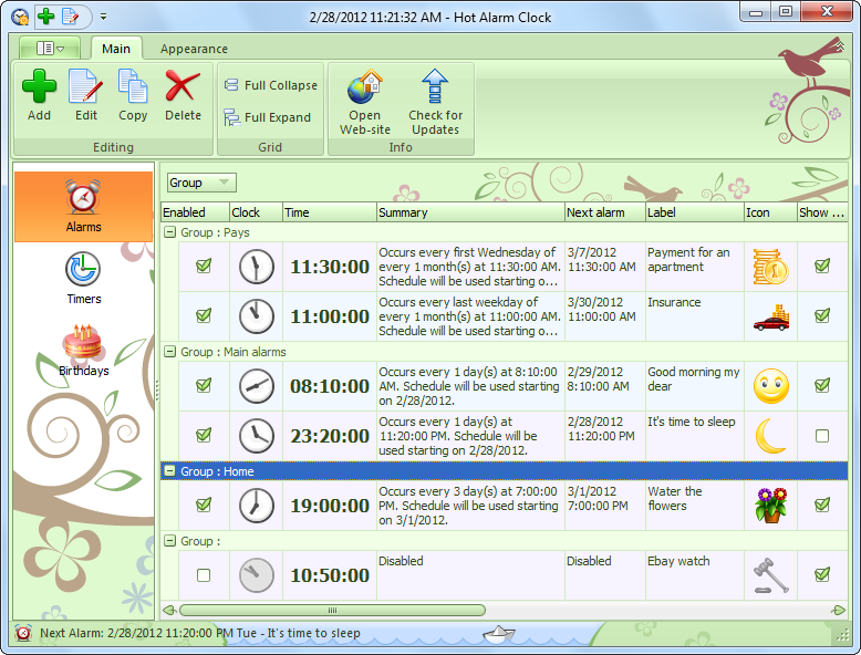 Hot Alarm Clock je šikovná a spolehlivá aplikace ke správě alarmů. Vstávat můžete se svými oblíbenými písničkami, nebo s rádiem vašeho výběru, nebo spustí aplikaci, kterou nastavíte. Množství alarmů je neomezené a každý z nich má velké možnosti konfigurace.