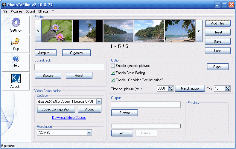 PhotoToFilm je dokonalým společníkem pro každého, kdo používá digitální fotoaparát. S PhotoToFilm můžete snadno vytvořit malé filmy z vašich obrázků a jejich komprimaci (tj. pomocí DivX). PhotoToFilm vám umožní přidat profesionálně vypadající efekty v několika málo kliknutích a umožňuje vytváření videa.