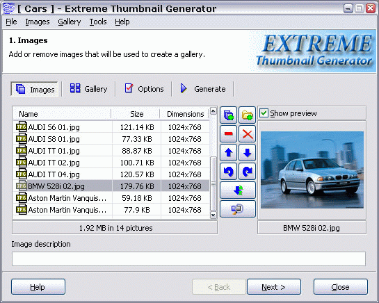 Výkonný pomocník usnadňující tvorbu webových fotogalerií s přehlednými náhledy. Podporuje práci s formáty JPG, GIF, BMP, TIFF a dalšími. Umožňuje zjištění a využití EXIF informací. Součásti programu je i FTP klient pro snadnější publikaci fotogalerií na Internetu.