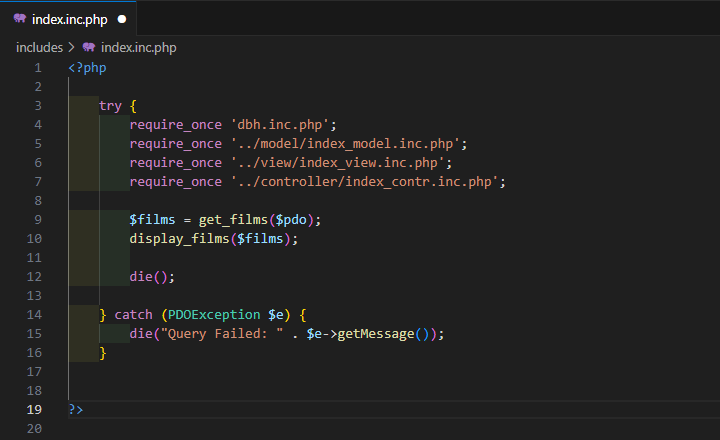 No jde o to, že ten output_films.inc.php je kompletní kod (tedy model a view v jednom souboru) na výpis filmu do stránky. A já se snažím, teď to rozdělit do těch souborů jako index_model.inc.php, index_view.inc.php a index.contr.inc.php. Jenže někde mi hapruje to posílání dat mezi soubory a funkcemi.