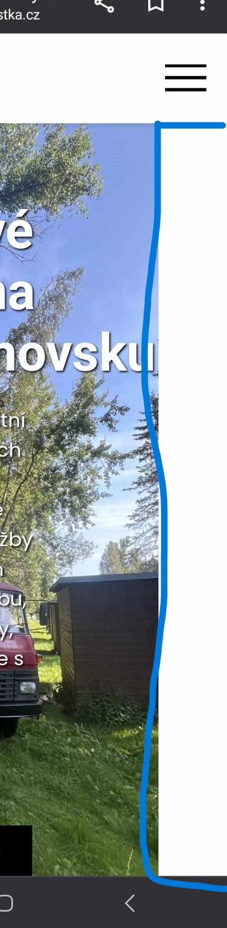 vytvořil jsem web na kterým jsem strávil spoustu času aby byl responzivní. Když ho otevřu v devtools a zapnu si tam ten "mod" na responzivitu tak vypadá naprosto v pohodě na všech rozlišeních, ale když jsem ho dal na server a otevřel jsem si ho na mobilu tak se mi stává takový problém a to ten, že ten web se načte dole je scroll bar na x osu a navbar je sice od okraje ke kraji, ale zabírá mi 1.3 obrazovky, ale když to odzoomuji tak to je v pohodě to co mě nejvíc trapí je, že na pravé strane se vytvoří taková mezera třeba o 20px a vůbec nevím čim to je viz foto. Zkoušel jsem nastavovat width 100% a různě hledat co by to mohlo být, ale nic mě nenapadlo. Nevědel by někdo čím by to mohlo být? Díky.