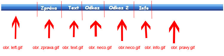 <img src="levy.gif"><a href="zprava.html"><img src="zprava.gif"></a><a href="text.html"><img src="text.gif"></a><a href="neco.html"><img src="neco.gif"></a><a href="neco.html"><img src="neco.gif"></a>