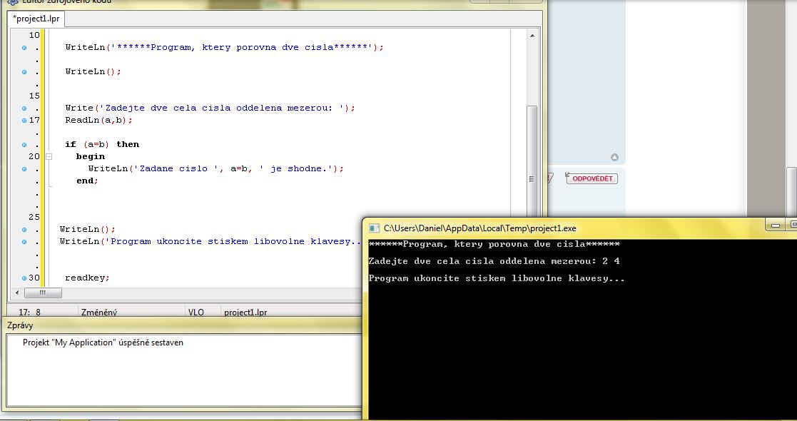 No pokud to udělám, tak, když to spustím a zadám tam ty dvě čísla, tak se mi zobrazí tohle...