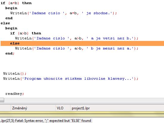writeln('Čísla ',a,' a ',b,' jsou stejná.')