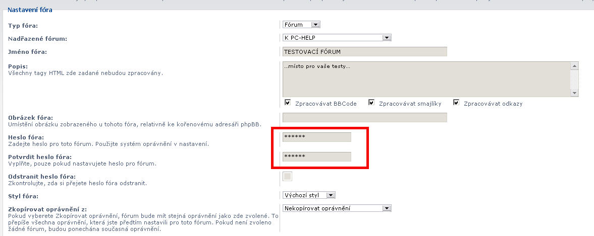 v administraci: Fóra >> Spravovat fóra >> Upravit (vybrané fórum), zde nalezneš menu pro zadání heslo pro vstup do fóra...