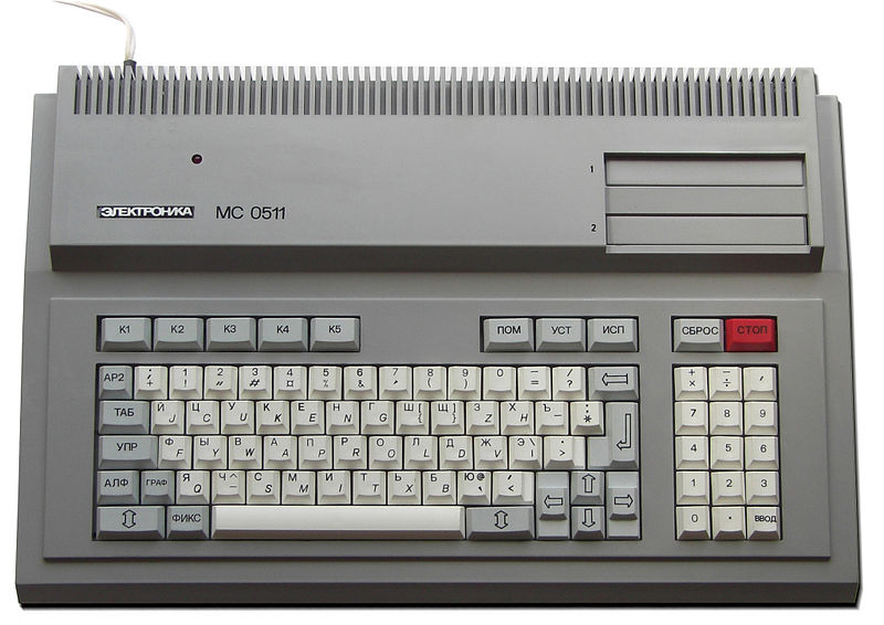 Další klávesnice pochází ze sovětského počítače Электроника МС 0511 (Elektronika MS 0511), vyráběného od roku 1987. Obsahoval dva mikroprocesory КМ1801ВМ2, které jsou jednočipovým analogem legendárního šestnáctibitového minipočítače PDP-11 z roku 1970! Jeden z nich fungoval jako hlavní procesor, druhý jako řadič periférií, a bylo možné na něm spustit jakýkoliv operační systém nebo software který pro jeho vzor byl vytvořený, včetně UNIXu, jenž na něm vznikl. Tenhle počítač je také známý pod názvem УКНЦ (UKNC) - učebnyj kompjuter naučnovo centra: