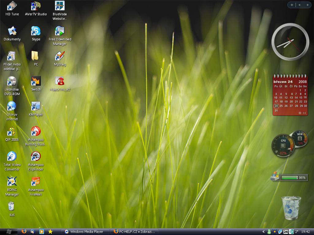 No, dřív sem taky měla toho na ploše hodně, jenže sem zjistila, že je lepší to mít uspořádaný a ne furt tu ikonu hledat, navíc spoustu věcí používám dost málo, tak proč to mít na ploše :-) A ty máš jen modrou barvu, jo? Až tak bych to zas mít nemohla.. Nějakej obrázek potřebuju