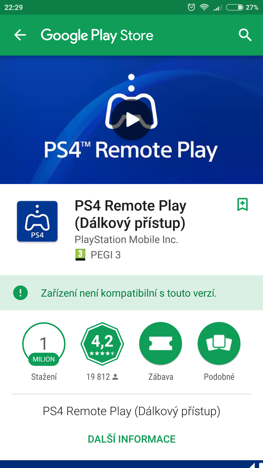 Když si chci stáhnout Aplikaci PS4 remote play z Android marketu, tak mi vyskočí tato hláška...