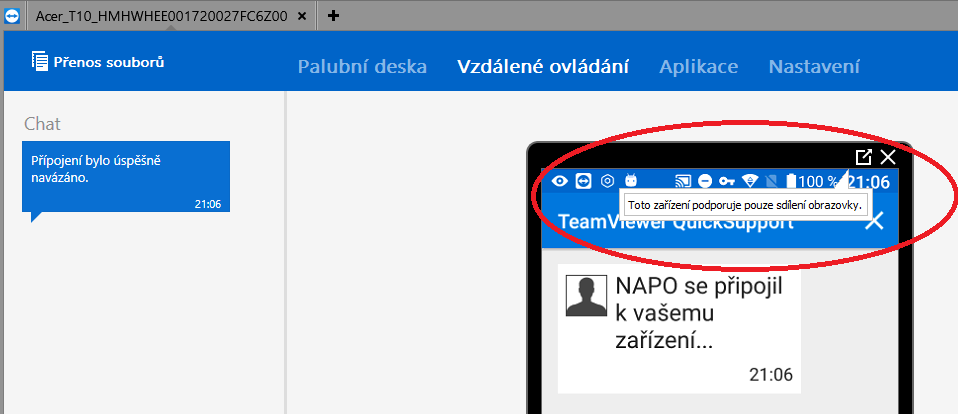 teď jsem to zkoušel na svém telefonu: nainstalována aplikace TeamViewer QuickSupport, po spuštění mě žádá o doinstalovaní doplňku pro HTC takže OK. Spustím TeamViewer v PC, zadám číslo z aplikace a hurá, mám plné ovládání mobilu.