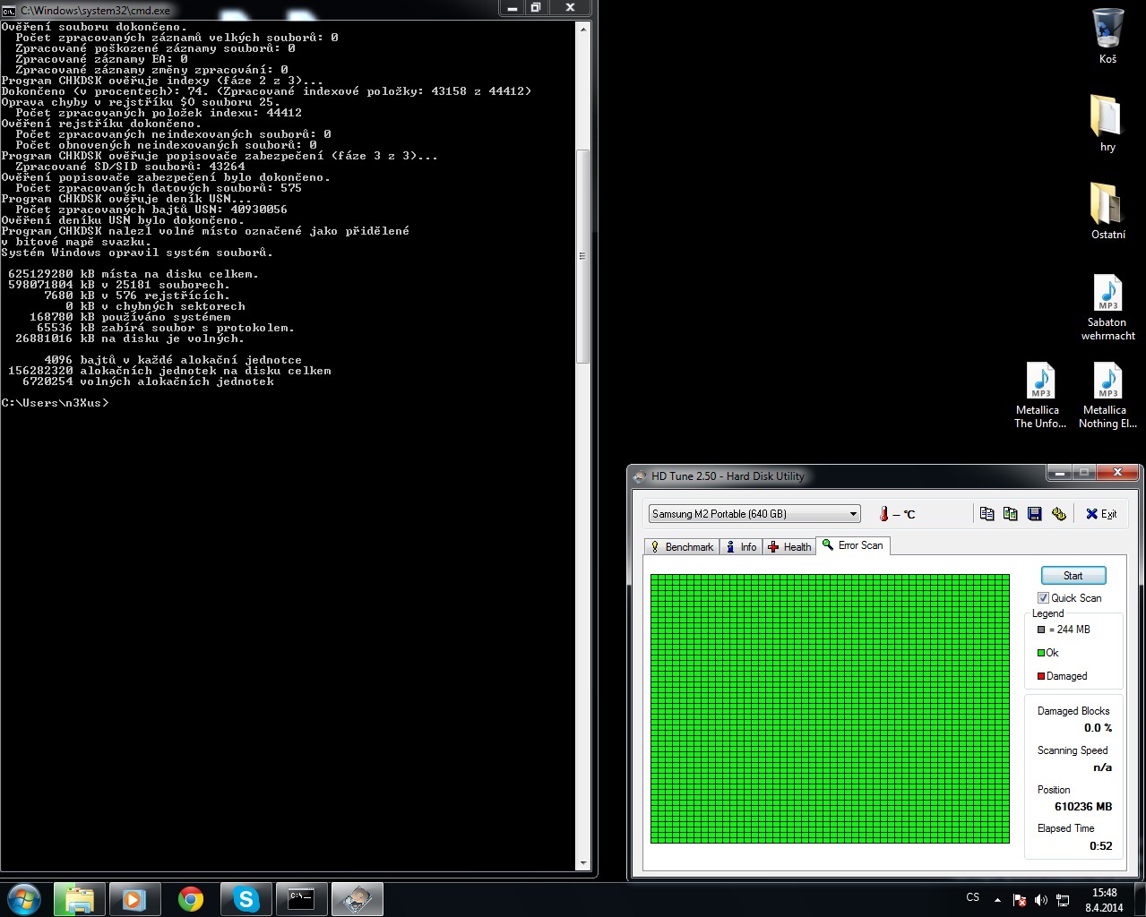 Tak sem dal ten chkdsk a hd tune test tady máte screeny (to přesouvání dat mám na flashku)