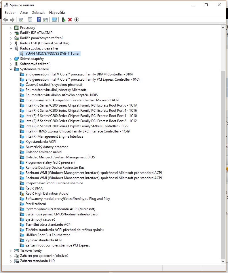Ale bohužel jsem zjistil, že nyní windows nerozeznají zvuková zařízení, přesněji hlásí mi, že je tam pouze TV TUner, jediné co vidím, že by s tím mohlo mít něco společného je Řadič High Definition Audio.