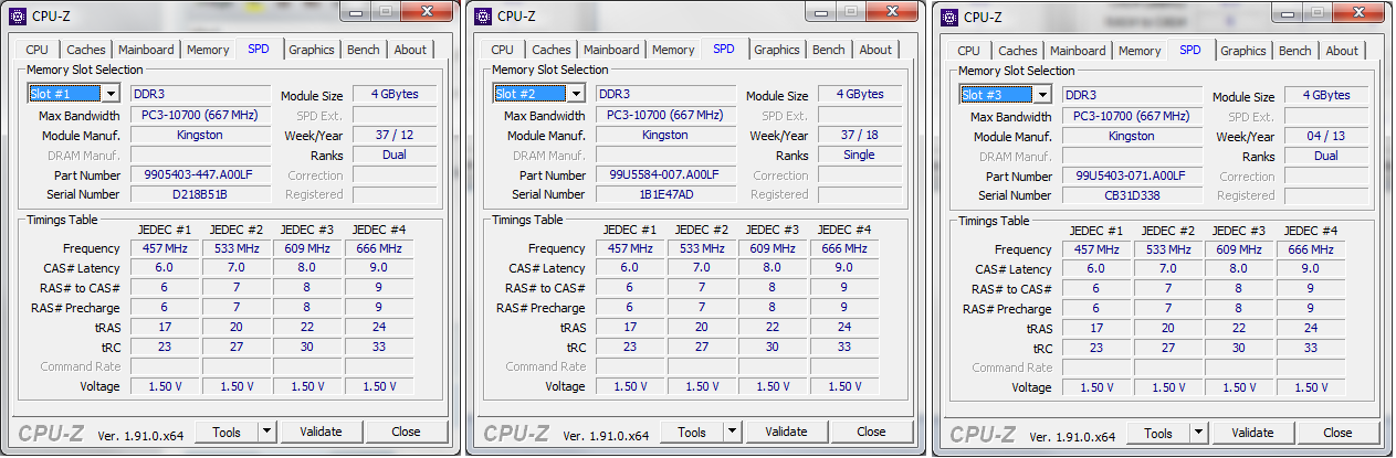 V BIOSu i CPUZ se lze podívat na jednotlivé sloty a všechny tři 4 GB moduly se tváří, že jsou v pořádku: