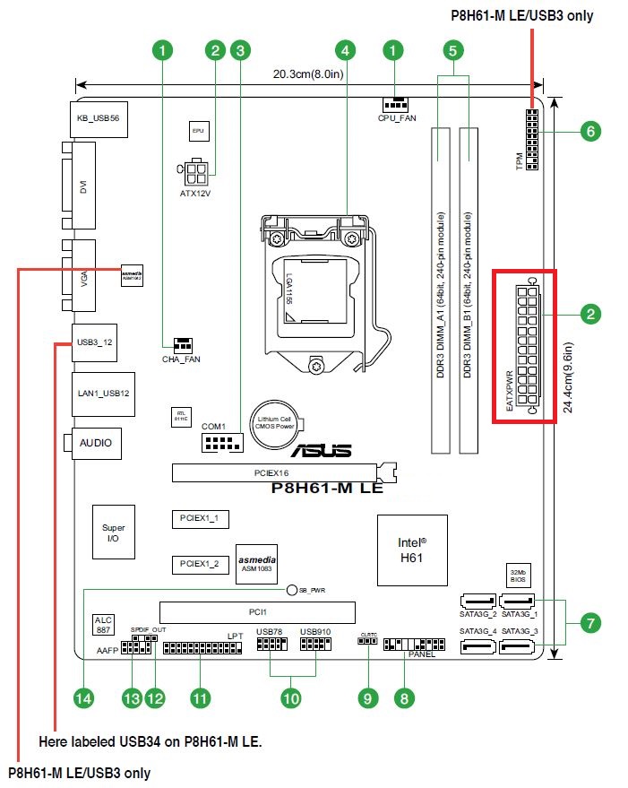 deska P8H61 M LE = ATX 24 pinový a ATX12V 4 piny