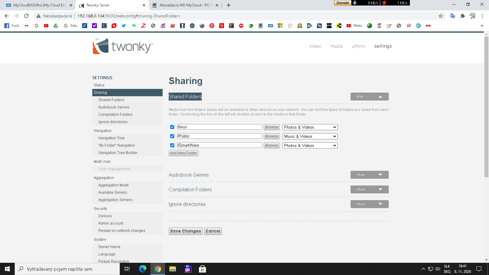Nastavené to mám takto ale prečo mi v domácej sieti Cloud nevidno, jedine v KODI a v Twonky zase nevidím Sat.tuner. Predtým to všetko fungovalo. TV nevidí ani Twonky a v Twonky ho vidím.