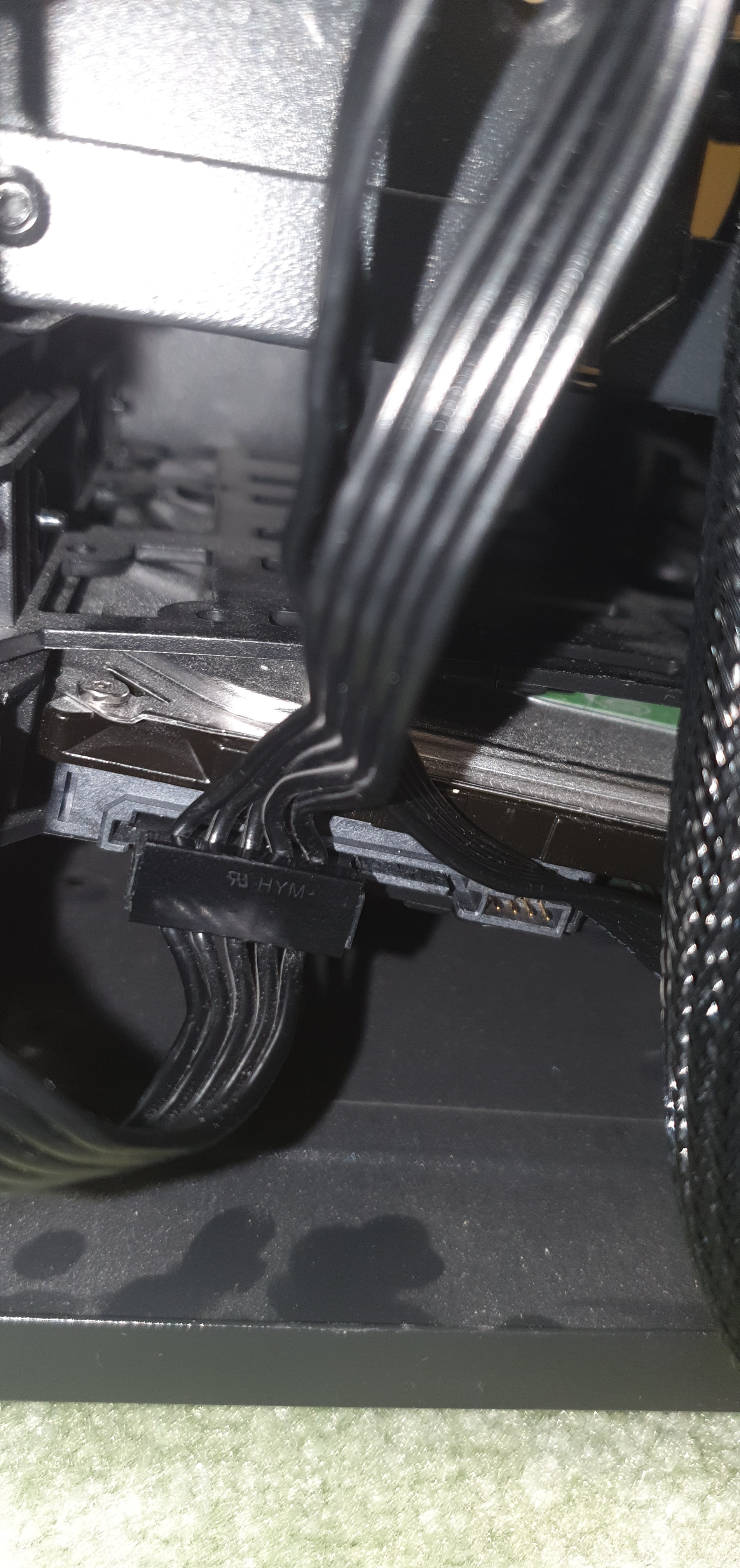 No vidíš, kabelů kopec. Na obráku máš šipkou označené sata napájení, je to zamotané, přestřihni tu platovou objímku, co z toho dělá klubko, ať si to rozmotáš. Bývají na jednom kabelu 3 SATA konektory, máš obsazené dva.