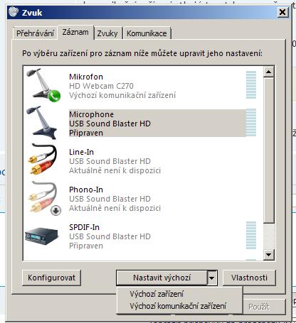 mmmartin píše:Je tak pro jistotu: mikrofon máš nastavený jako výchozí komunikační zařízení?