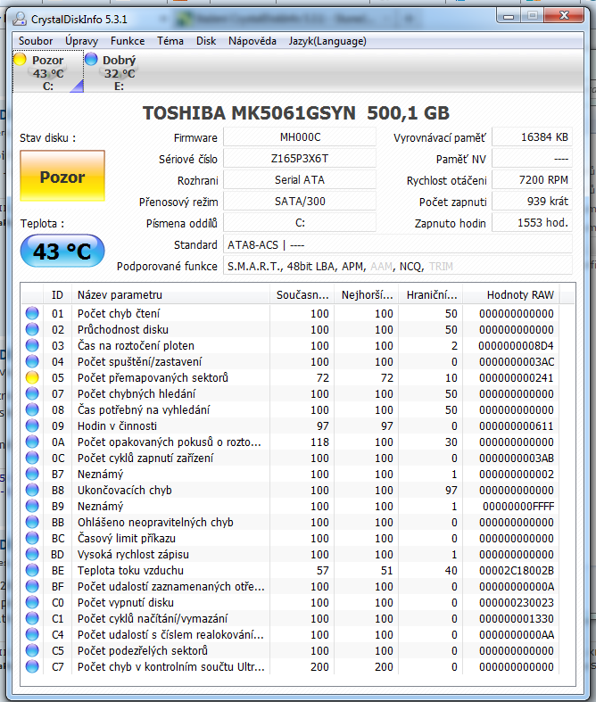 Ještě jsem tedy v jednom topicu tady našel při problému s hdd použití programu CrystalDiskInfo. Hážu sem tedy PS, který mi nepřijde moc v pohodě.