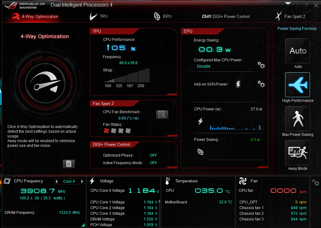 Mám problém s chladičem Noctua nh-u12s. Mám základní desku Asus Maximus VI Hero a procesor Intel core i7 4770K. Když spustím PC a bootuje BIOS tak mi to hodí chybu s CPU chladičem (cosi že nízké otáčky). Na internetu jsem četl že mám ignorovat sledování otáček (ano, velká hloupost). Chladič mám zapojen klasicky do CPU_FAN na zákl. desce a je tam ještě zapojení pro CPU_OPT. Ve Windows v programu Asus ROG mi to neukazuje žádné otáčky na CPU FANu. (viz příloha). Že bych to blbě zapojil je vyloučeno, větrák se otáčí. Zdroj mám kvalitní Seasonic M12II-620W a větráky na skříni se točí v pohodě. V BIOSu mám nastaveno standartní nastavení CPU FANu. Kde by mohl být problém?