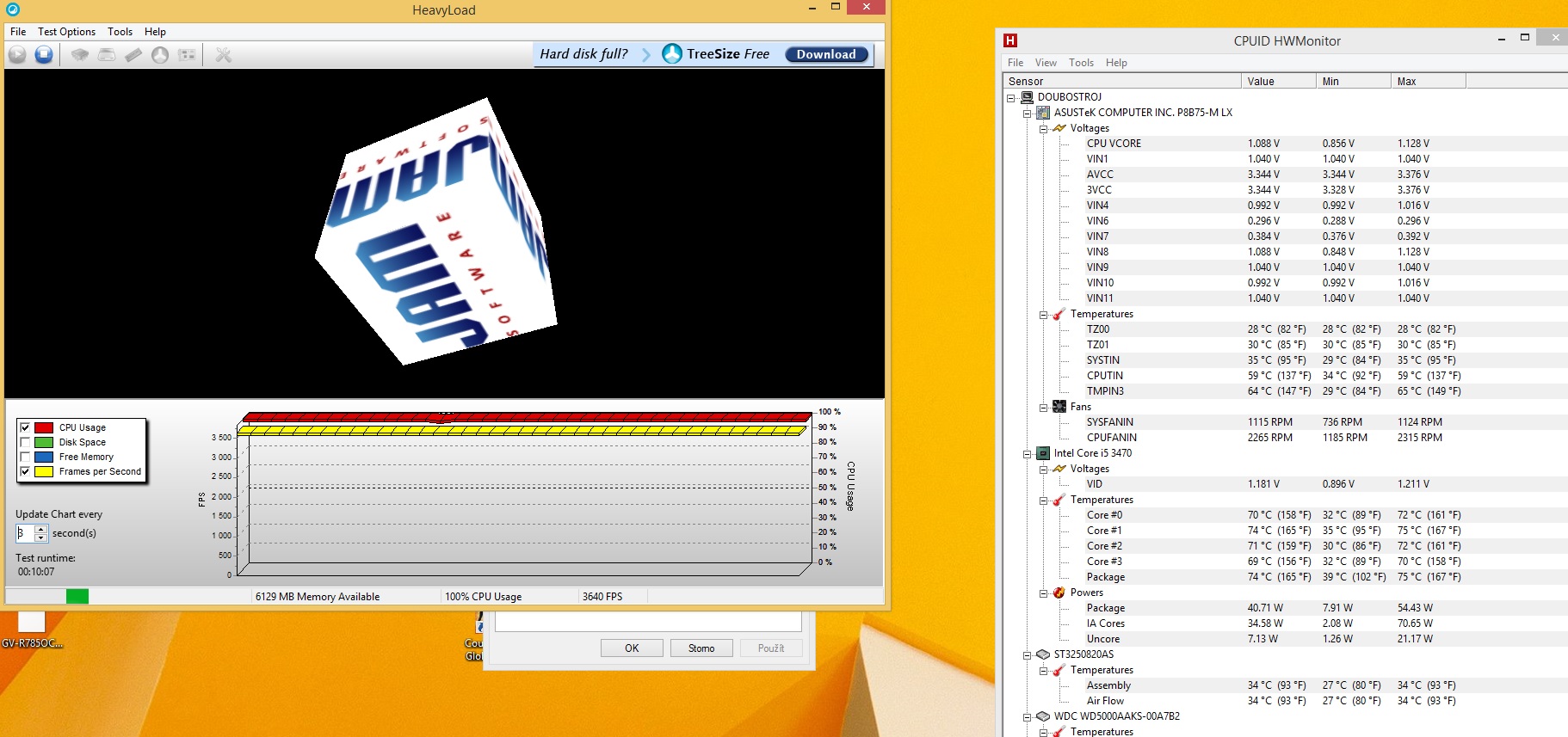 2) spusť HeavyLoad a Hardware Monitor. V HeavyLoad spusť zátěžový test, po 10 min udělej screen Hardware Monitoru a hoď ho sem