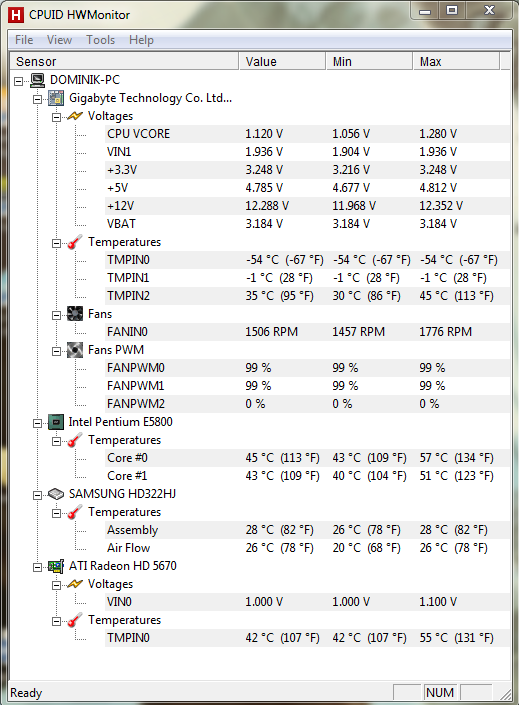 Tak v HW monitoru jsem včera naměřil max. 60 stupňů. Pohybovalo se to vetšinou kolem 45 - 70 stupňů. Dneska je zatím max. 55 stupňů.