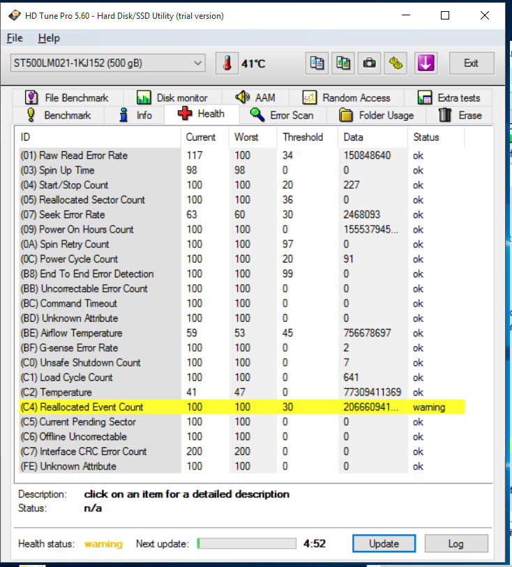 Fadrc a máš v HD Tune Pro u této hodnoty warning nebo ok??