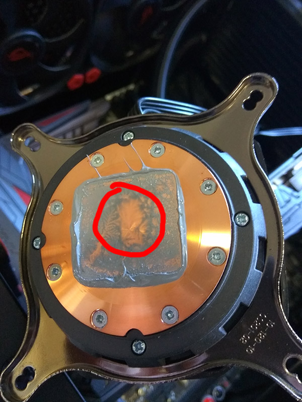 Na prvni pohled je videt, ze tam te pasty bylo moc. Udelat tohle s nejakou pastou ktera je vodiva, tak nemusis mit procesor.