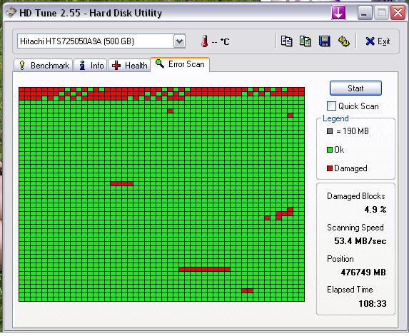 Ten HDD nemá vadné sektory, "jen" podezřelé. Když budeš dělat Error Scan v HDTune, nedělej Quick Scan, je k ničemu! Screen z položky Health Ti ukáže to samé, jako CDI, je to max. pro ověření výsledku CDI, ale snad se mi ještě nestalo, že by se to lišilo.