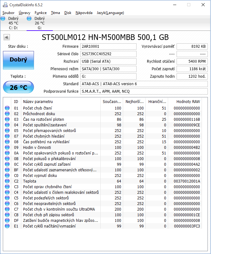 Prvni nainstaluj Crystal Disk Info a vloz sem log ze stavu disku.