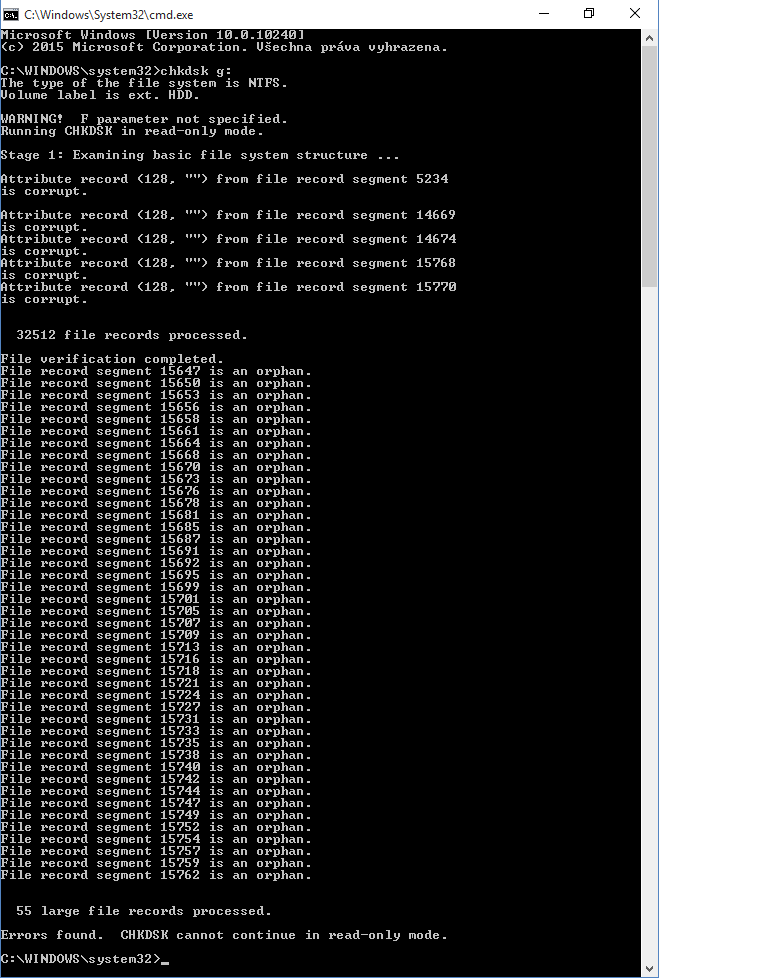 Hází to chybu 0x80070570 soubor nebo adresář je porušen není čitelný