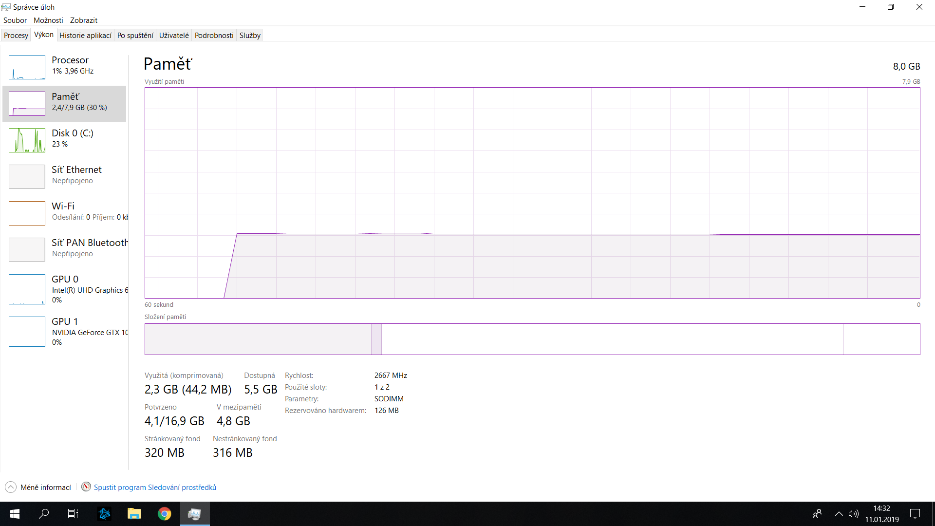 Problém je že když zapnu PC tak již od začátku co běží, bez žádné zátěže, když nic nejede, se vyučívá až 50% RAM ! což nechápu. Tím pádem je hraní her jako GTA 5 dost problém, jelikož se to dost, dost seká. Přikládám screen z správce úloh.