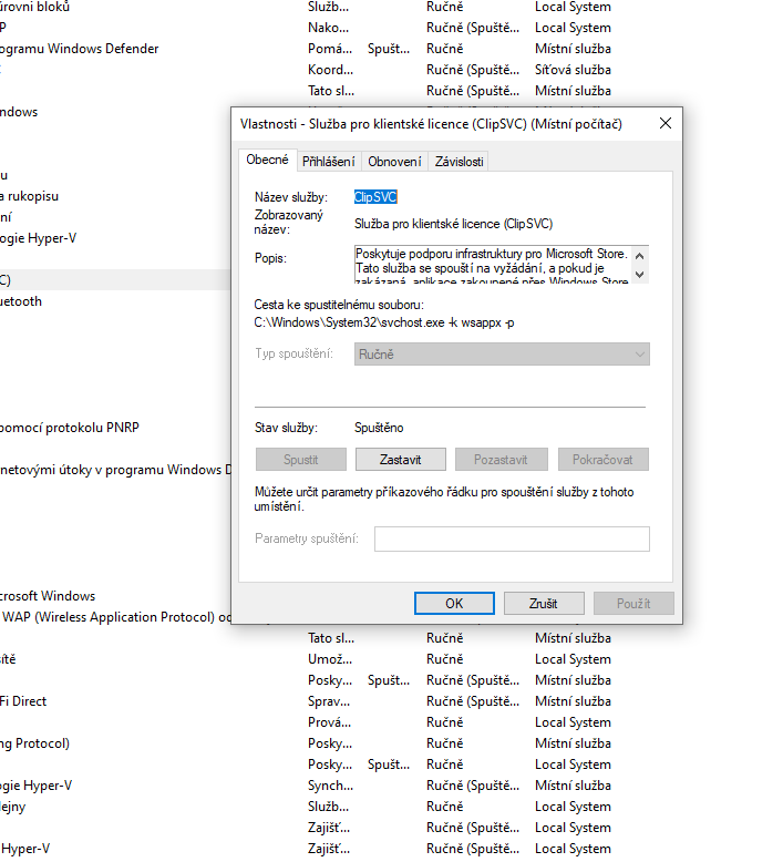 Díky za pomoc, dělal jsem na tom, shlédl jsem různé návody i na zahraničních webech a videa. Nic mi nepomohlo. Dokonce ClipSVC nejsem schopen zakázat, viz příloha. Vždy ho vypnu a po restartu hned vystřelí procesor na 99% a stále se to zasekává.