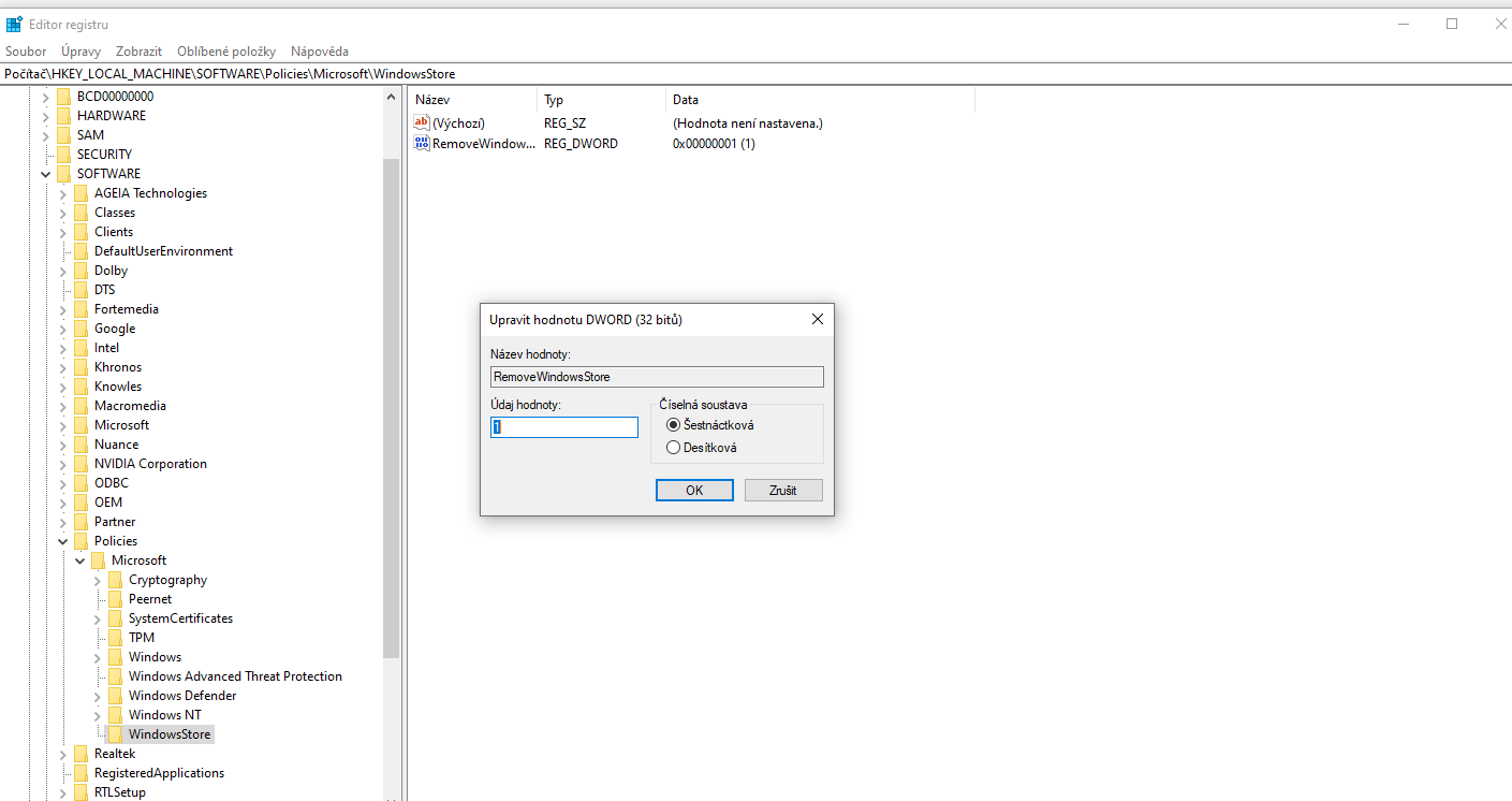 EDIT: Editoval jsem i v registrech zakázání Microsoft Store, viz příloha. Taky nic.