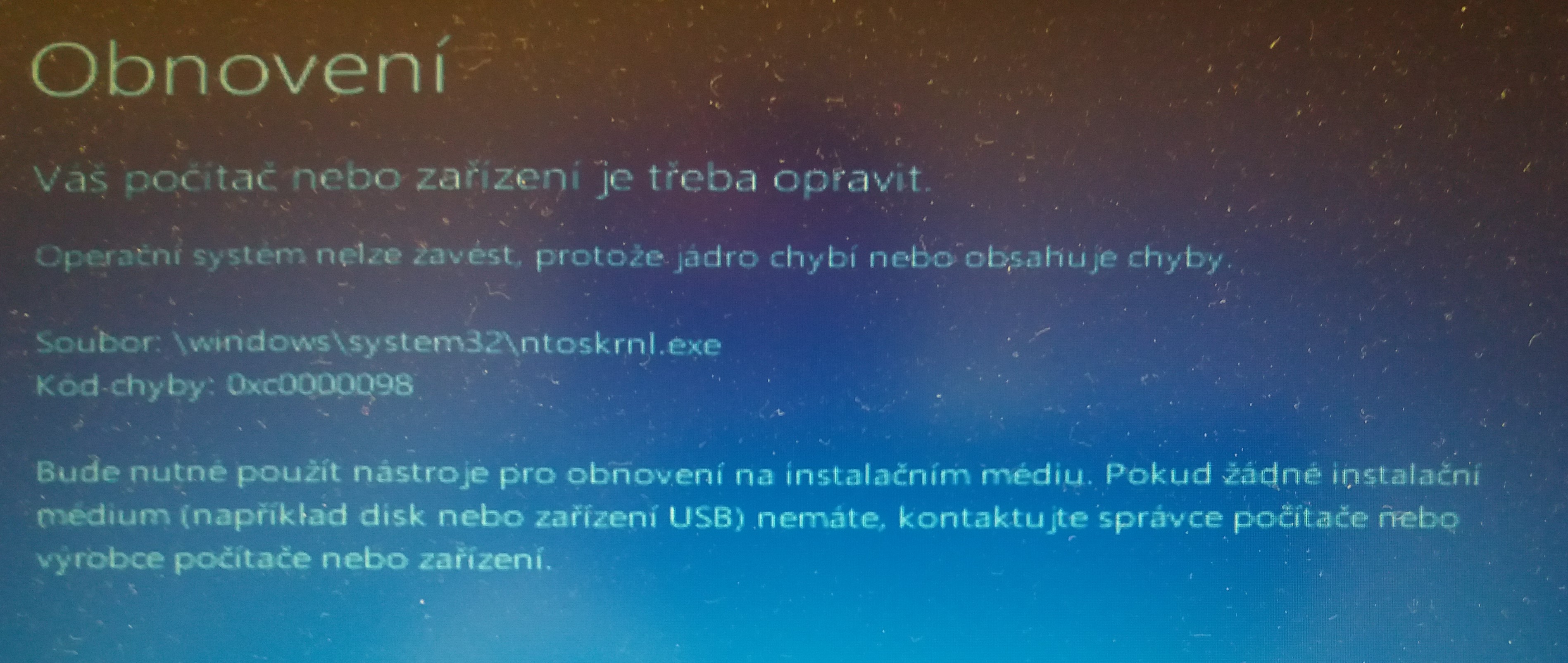 několikrát se to restartovalo a v pohodě. Teď ráno to zapnu a modrá obrazovka :-(