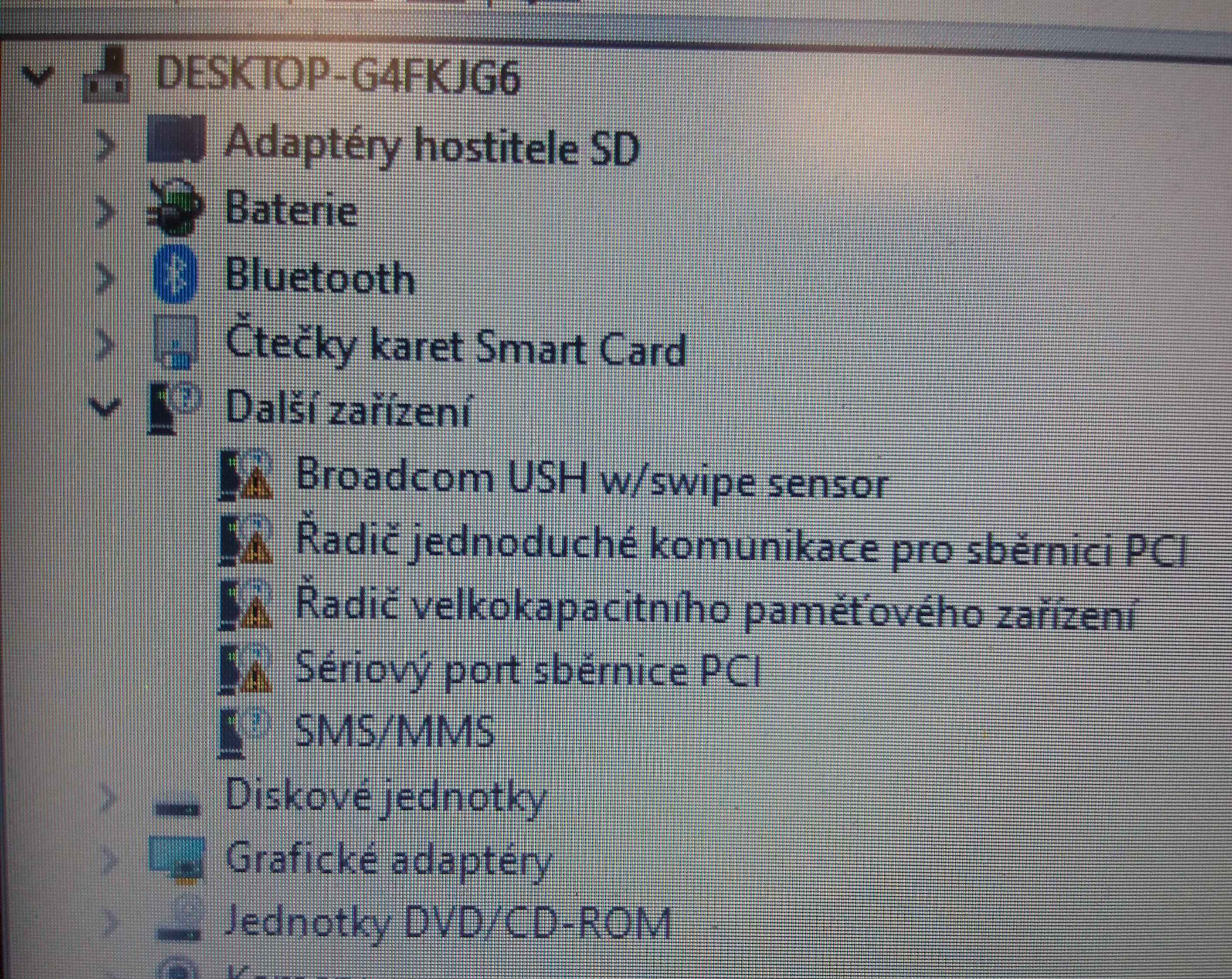 Ještě tam mám ve správci zařízení nejaké zařízení s vykřičníkama.