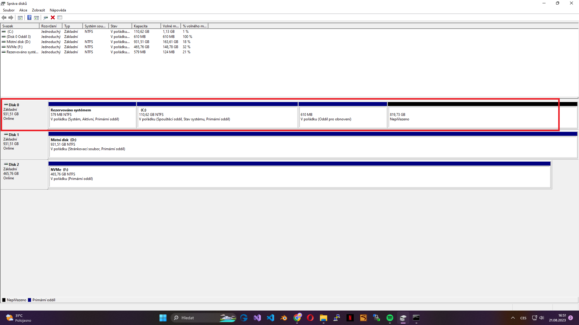 Menší ssd naklonované do většího - nelze rozšířit kapacitu C: o nealokované místo na disku