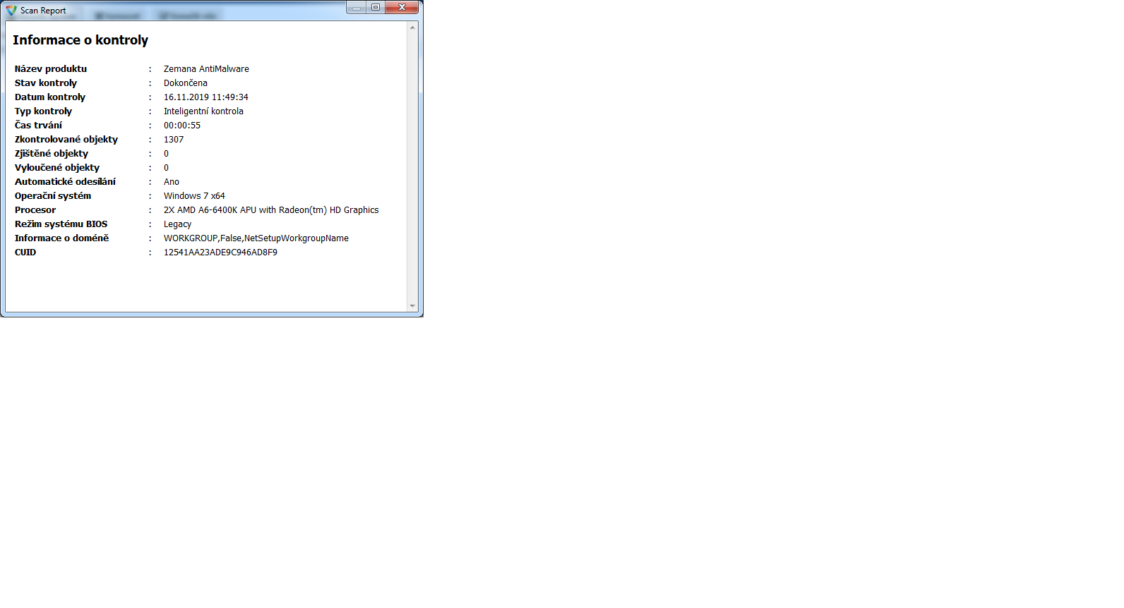 Když je skenování dokončeno, objeví se tisková zpráva , zkopíruj sem celý obsah té zprávy.