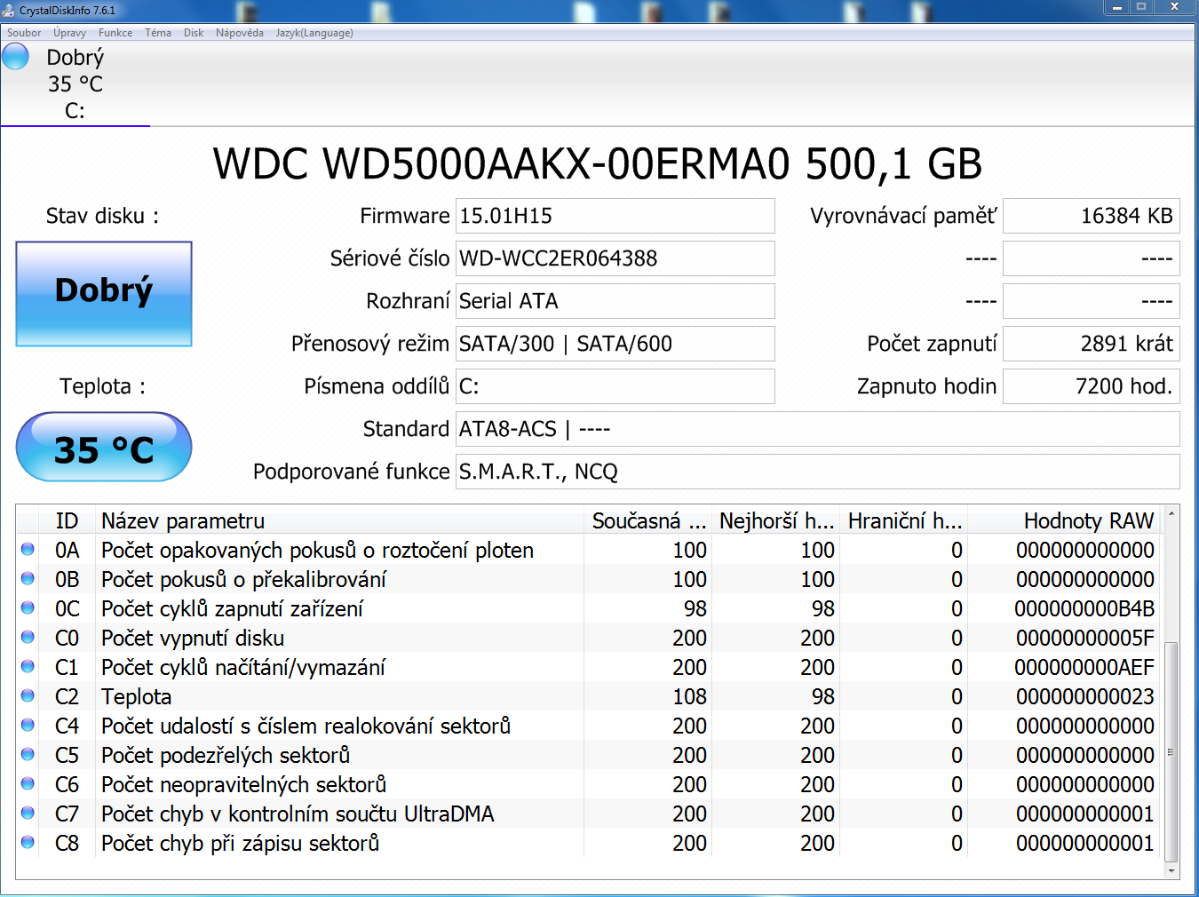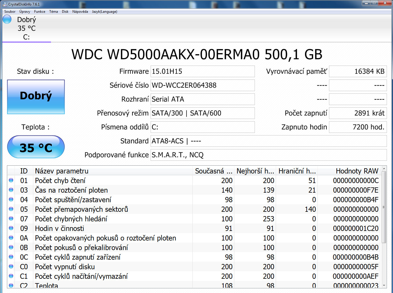 CrystalDiskInfo log mě nejde zkopírovat tak posílám v příloze obrázek