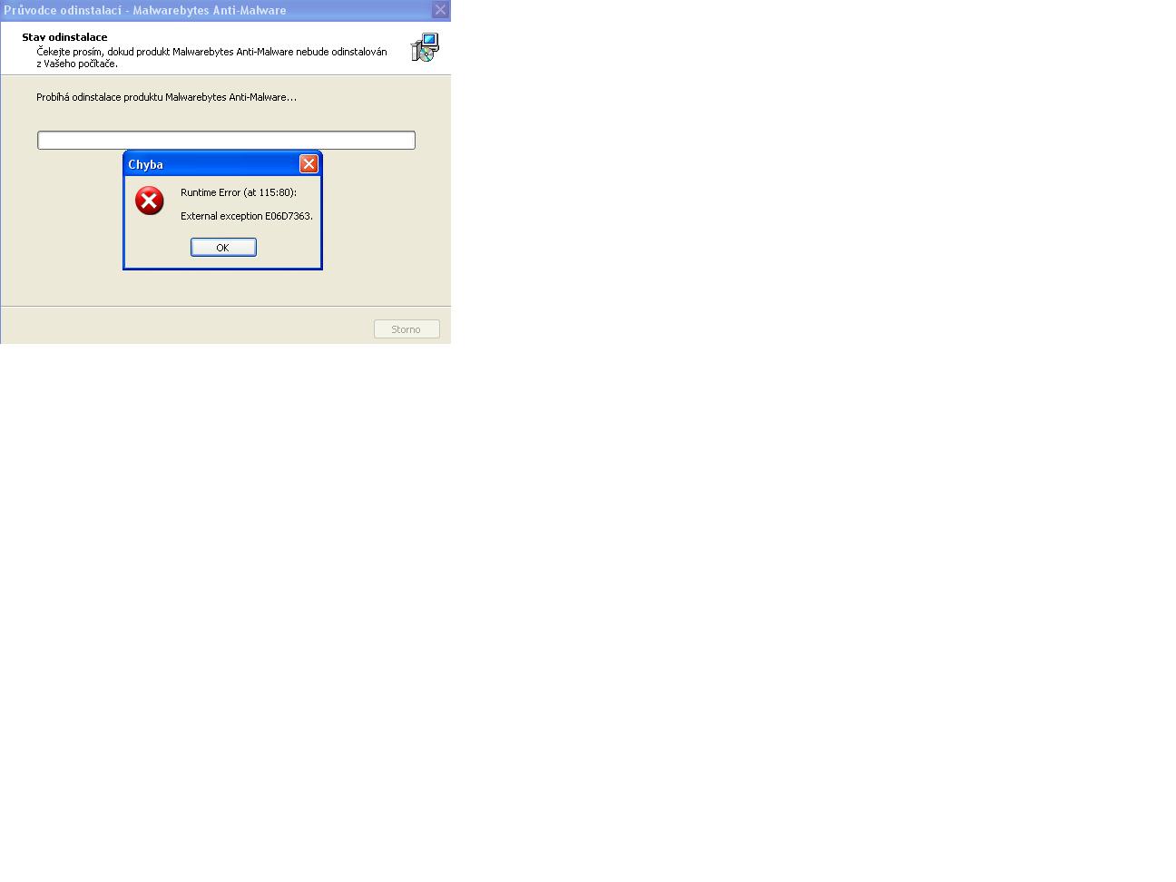 Ještě jedna prosba: nejde odinstalovat Malwarebytes Anti-Malware. Ani v nouzovém režimu. Stále to háže nějakou chybu
