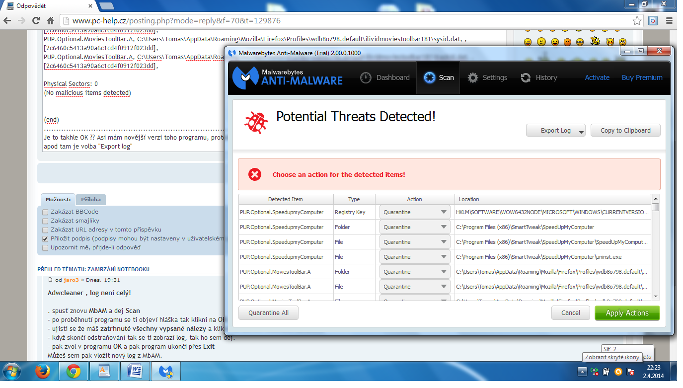 Místo pro vaše HiJackThis logy a logy z dalších programů…