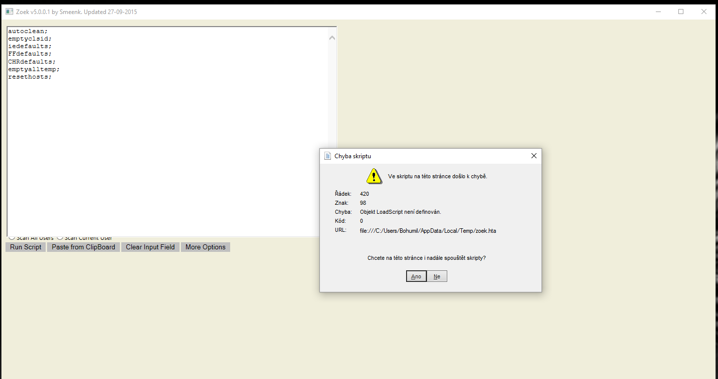 Ten ZOEK mi nejde pořád tam naskakuje toto.