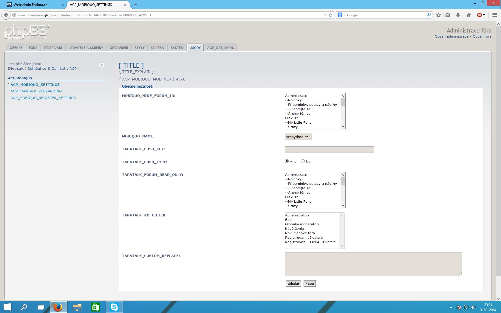 - nahrání Tapatalk souborů do rootu fóra (do spec. složky)