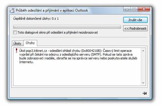 Zkoušel jsme stejně tak různé poštovní klienty se stejným výsledkem, poštu nelze odeslat