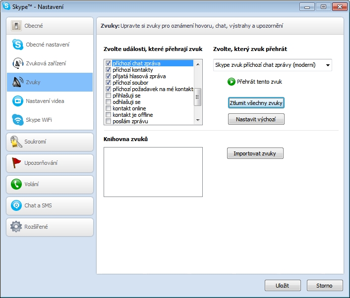 Zkontroluj, zda je zaškrtnutá událost "příchozí chat zpráva".