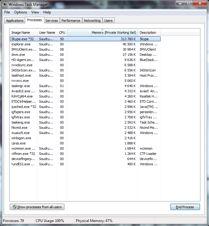 Skype... Vždy když ho zapnu tak Využití CPU stoupne hned na 100%