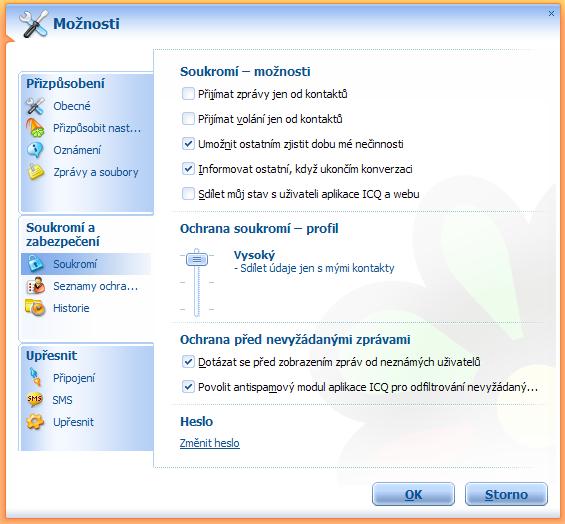 V ICQ mám nastaven filtr a nic mi nechodí.