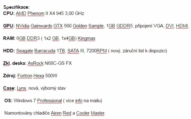 Re: Prodám herní počítač na méně náročné hry + monitor