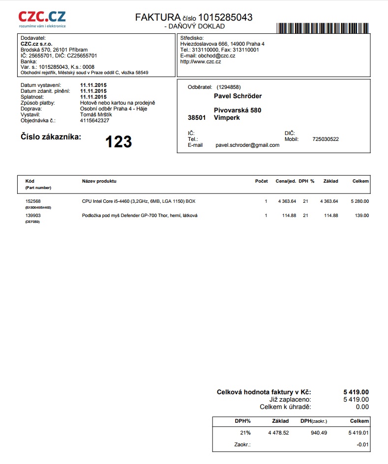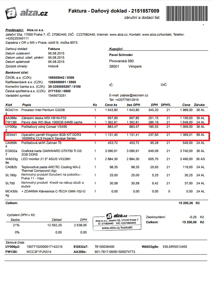 Nastal čas upgrade a proto prodávám následující komponenty. Vše kupované během roku 2015 na alza a czc, tedy již bez záruky, nicméně kompletní balení, faktury a 100% funkční bez závad.