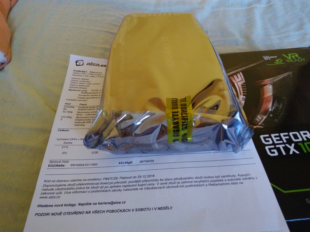 "Prodávám novou a nevybalenou grafickou kartu Nvidia GTX 1060 6 GB se zárukou u Alzy."